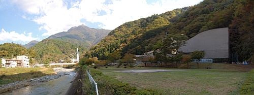 下部川と下部リバーサイドパークと湯之奥金山博物館を一望しています。 周囲には、だいぶ秋色が増えてきました。下部川の流れにご注目いただきますと、斜張人道橋の通称「メロディーブリッジ」の辺りはまだ陽が当たっていますが、それより手前のエリアは、日陰になってしまっています。撮影は、10月28日の午後1時20分頃です。画面右手の博物館は、これよりもう少し早い時刻に陽が陰ります。これは博物館の背後の山がとても高く、秋冬の日差しをさえぎるからです。 本日は、10月最後の水曜日。湯之奥金山博物館は、定期休館日となります。どうぞご留意くださいませ。 明日の木曜日からのご利用をお願い申し上げます。