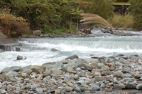 このところ、下部川の流量が大きくなっています。ゴウゴウと音を立てて流れているのにひかれて、レンズを向けてみました。最初は、シャッタースピード 1/30sec.で撮りました。暗い場所での撮影の続きで、何も考えずにシャッターボタンを押したのです。ゆっくりめの露光時間のため、水量たっぷりな状況がとらえられました。 つづけて、1/400に切り替えて(ずっとマニュアル設定です)撮ってみました。比べて見ると、より短い時間になって、瞬間的な川の流れの力強さが感じられるものとなりました。