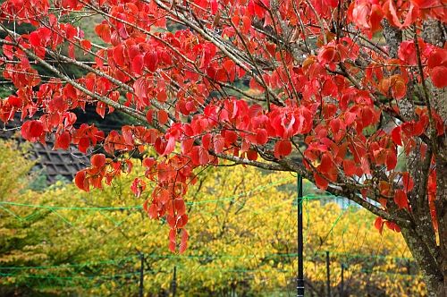 一つ前の記事で、下部リバーサイドパークのカワヅザクラの黄葉をとりあげましたが、それとヤマボウシの紅葉とのコントラスト、とてもいい感じで写真におさまってくれました。 湯之奥金山博物館のまわりも、しだいに秋色が美しくなってきています。