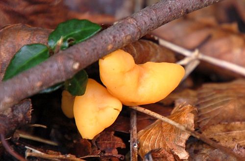 湯之奥金山博物館は、おかれた環境からして、たくさんの種類のキノコが見られますが、それらの名前はなかなかわからないです。 これもその1つ。前回のベニチャワンタケモドキの近くで見られたのですが、不思議な形のキノコです(キノコだと思われます)。 塊のようになって、いくつかまとまって見られます。
