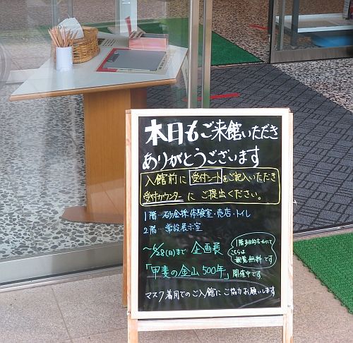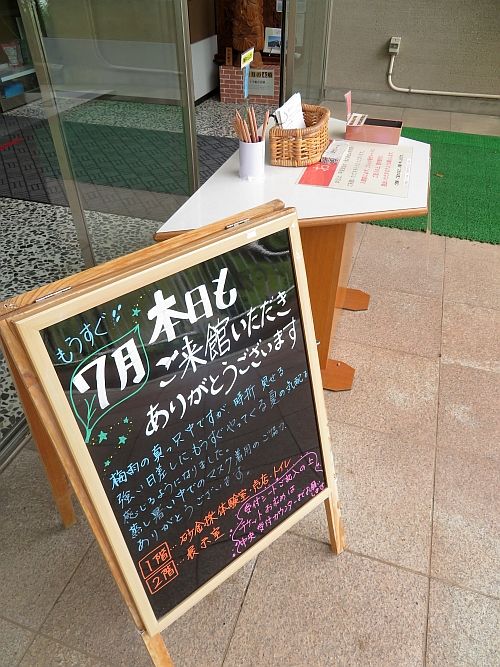 博物館正面玄関前に出されているウェルカムボードの最新版は、こんな感じ・・・。7月の到来を控えてのバージョンです。