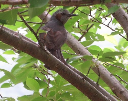 ソメイヨシノの枝々を観察している時に、突如現れたのは、ヒヨドリでした。気のせいか、少し幼い感じがしました。この春に生まれたものでしょうか。