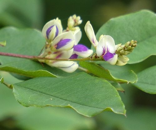 木本だけど、マメ科の花をつけている・・・。ハギの仲間だね。何ハギだろう。ハギといえば、秋というイメージがあるけど、まだ6月というに、ちょっと驚きでした。 ネットなどで調べた結果、キハギというのだと判明しました。黄色くもないのに何でキハギなんだろうと、ちょっと違和感・・・。 でも、それは早とちり。黄色いからキハギではなく、木萩なんだということでした。崖などに生え、乗り出すようにすることが多い木という点が特徴とか。そういえば今回の観察も、博物館の裏手の山の急斜面に生えている木なのでありました。 キハギの花期は、6月~9月とのことで、6月から咲き出していることは問題なしでありました。