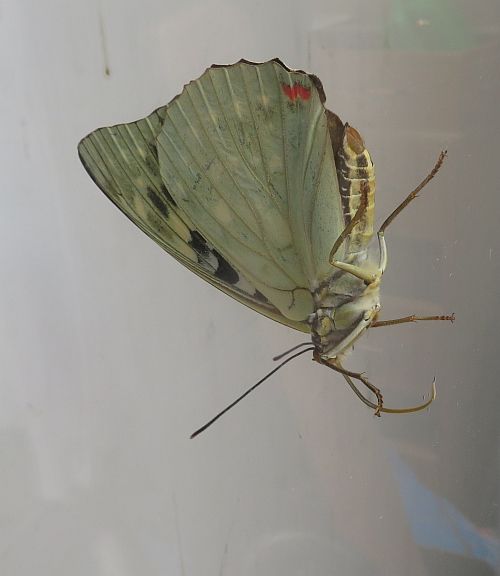 これは先月末(5/29)の観察ですが、サツキツツジの花にモンキアゲハがきていました。最初に気付いたときは、ちょっと距離がありました。 近づいて、バシッと。吸蜜中です。 モンキアゲハの場合も、花から花へ移っていく時、吸蜜管を完全に巻き込んではいないようすが見られました。きっと、いそがしいんですね。