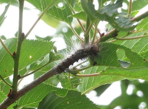 サクラの葉っぱって、甘くて柔らかくて、とてもおいしいみたいです。食べたことないですが・・・。若葉がいっぱい食害されている場所をあらためて観察してみると、犯人の一人をみつけました。 博物館の隣の下部リバーサイドパークのソメイヨシノの枝先での観察で、どうやらマイマイガの幼虫のようです。 マイマイガの幼虫は、10年おきくらいに大発生するそうですが、今年の場合はどうなのでしょうか。大発生でないとしても、こんなふうに家の中まで攻め寄せてくることがしばしばあるようです こちらの写真は、博物館の砂金採り体験室のガラス壁にはりついていたマイマイガの幼虫。毛虫をお腹の方から見ることになりました。おおまた開きになっていてちょっと滑稽な感じがしました。