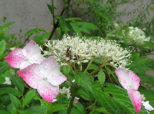 少し前に、このブログで取り上げた、博物館の正面玄関前で見られるアジサイの花です。 でも、この「花」というのが、とても難しいのです。 最初の写真(6月12日撮影)のクローズアップですが、この段階では、みんな、まだつぼみでした。では、花が咲くとどうなるか・・・。 本日、雨に濡れたそのアジサイの花をじっくり見てみました。よく花びらのように見てしまうところは、花の萼で、花はその中心。この場合、うまく開いていて(いわば満開)、しべのようすもよく確認できます。 参考までに、「アジサイの花のつくり」でネット検索しますと、たくさんの情報が出てきますが、そのうちの1つの次の記事の参照を推奨します。 https://hanalabo.net/2018/10/31/about-autumn-hydrangea/