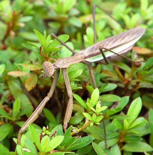 博物館の正面玄関近くのサツキツツジの植え込みで、オオカマキリを見ました。ありふれた存在・・・といっては失礼ですが、一番ポピュラーかと思いつつ、これまでの撮影データのストックを探したのですが、まったくといっていいほどオオカマキリの写真ありませんでした。 なので、この9月の終わり近くに撮影できて、ちょっぴりうれしい気分です。 「オマエ バカジャナイノ? ソンナノ トテモ しつれい ダヨ!!」 とオオカマキリさんにおしかりを受けたような感じの視線がありました。