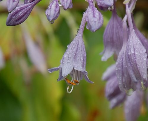 博物館の正面玄関前のちょっと目立たないところにですが、オオバギボウシがいま、花の盛りを迎えています。昨日は、雨を受けて、しとやかでありました。 静寂をやぶるかのように、スカシバが複数やってきて、せっせと蜜を求めているのが見られました。