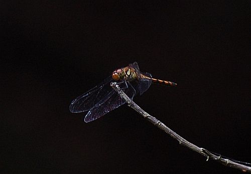 博物館の裏手の暗い環境で、枯れ枝の先に翅をやすめていた赤トンボの1種、アキアカネです。いよいよ、彼らが見られるようになったか、とちょっと感慨。