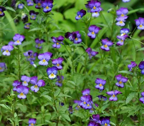 一般的にはビオラの花の時期は終わりを迎えているこの頃、でも、前回のサフランモドキのお隣にあって、とっても元気に咲き続けています。花がら摘みなどの一手間をそそいでいるせいでしょうか。