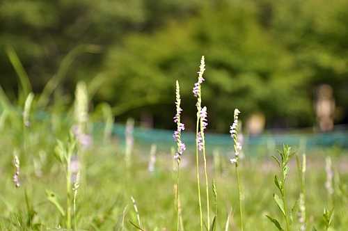 下部リバーサイドパークの博物館寄りの一帯に、ネジバナの花が、たくさん見られます。今回は、そんなようすを記録しようと、オートフォーカスを切って、ファインダーも使用せず目検討で、ローアングルで撮ってみたしだいです。 でも、花がちいさくて、期待した効果は得られませんでした。