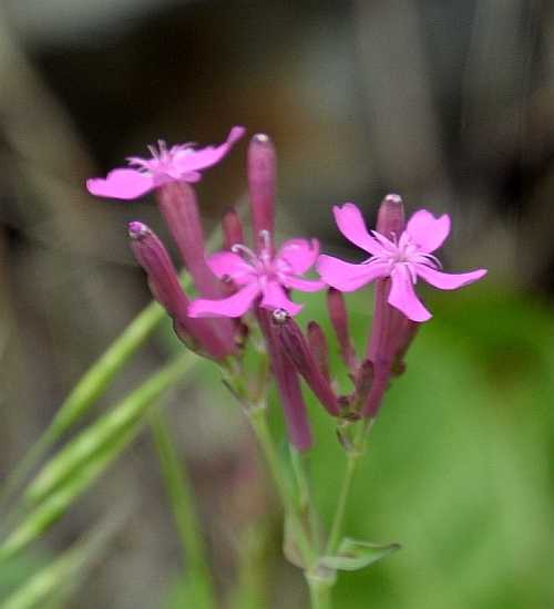 前々回のネムノキの花を見に出た時、合わせてこのムシトリナデシコの花を見かけました。博物館へのアクセス道路のガードレールの向こうに咲いていたので、望遠レンズ越しに撮影でごまかしてしまいました。ちょっとうまく撮りきれなかったです。 ナデシコの仲間の渡来植物で、ヨーロッパ原産なのが、観賞用に江戸時代にはもたらされたそうです。名前に虫取りとあるように、「茎の上部の節の下から粘液をだし、虫がくっつく」(『松江の花図鑑』のこの項)のだそうです。 アクセス道路脇に点々と、草むらの中に見られました。