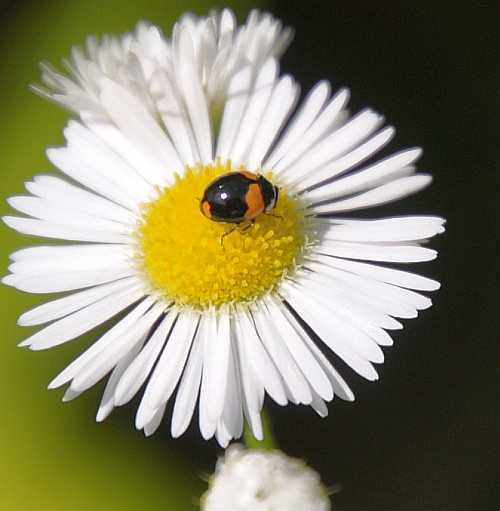 ヒメジョオンの花の上にいた小さな甲虫、はじめての認識、このブログ初登場となりました。最初、その名前不明。どんな虫なのか検討つかずでした。 でも、こうして撮影データをじっくり観察すると、どうやらテントウムシの仲間かなと、ケントウムシをつけ(いや、見当を付け)、ネット図鑑で確認すると体長3~3.5㎜ほどの小さなテントウムシであるマクガタテントウだと判明しました。これは7月16日の観察記録です。