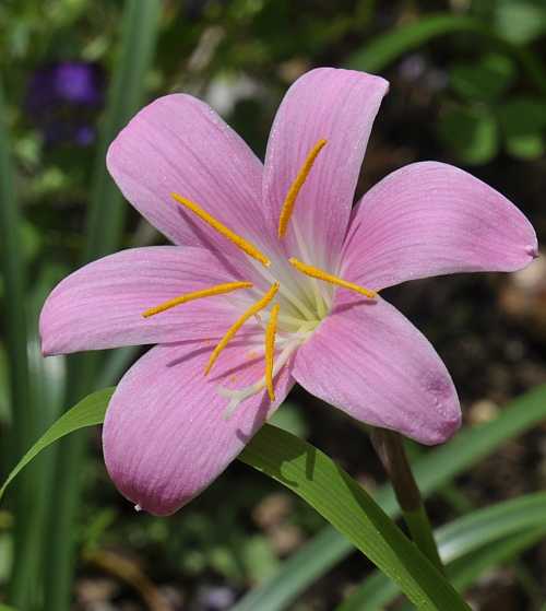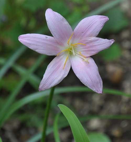 サフランモドキの花、開花して3日目の7月12日のようすです。花びらの先端のほうから、ちょっと元気がなくなってきているようです。 今回は、横顔も撮ってみました。