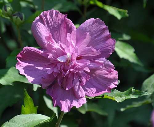博物館へのアクセス道路にそって、ムクゲの木が3株ほど植栽されています。そして少し前から、大きな八重咲きの花を咲かせています。 ムクゲは、八重咲きじゃないのもありますが、ここではみんな八重咲きです。