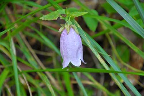 博物館の前庭の南側、高いお山の山裾に当たる場所に、まだ、ひっそりとホタルブクロの花が見られました。この7月19日の観察でした。