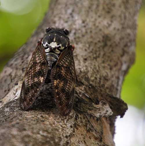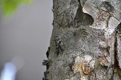 ゴワゴワした感じのするヤマボウシの木の幹に、ニイニイゼミを見ました。この木でうまく樹液がすえるのでしょうか、心配になりました。 周囲にとけ込むような存在のため、できるだけ近寄ってみようと思って、距離をつめようとしたら、パッと飛び立たれてしまいました。