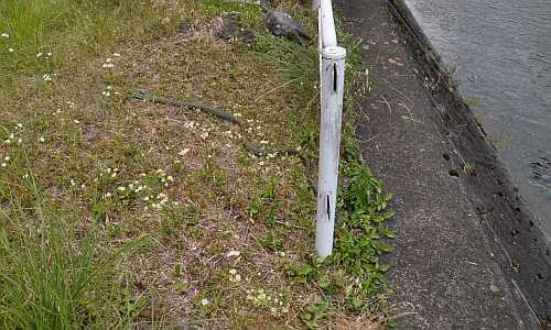 いつも下部川の流れについて定点的に観察をしている場所の1つで、川の流れに見入っていたとき、視界の隅にグルグルッとしたのが急にほぐれて動き出すようすがはいってきました。長さ1.5m余りか、太さもけっこうあるなと思われるアオちゃんでありました。 こちらが気付くより先に、あちらが行動を起こし、音もなくその場を去って行きました。ちょっとだけ、お顔を拝見できました。アオちゃんは、アオダイショウなんでありました。