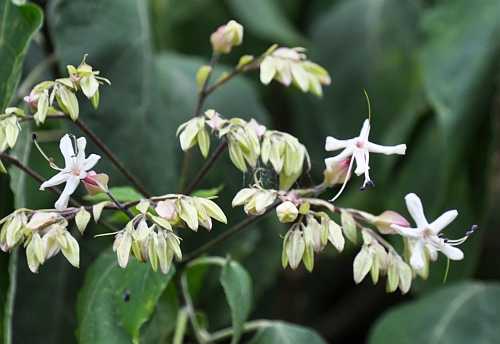 博物館の周りには、いくつかのクサギの木が見られますが、これは下部リバーサイドパークの下流側の外れにあるものです。たくさんのつぼみの中から、少しずつ開花が進んできています。 クサギは、クマツヅラ科クサギ属の落葉小高木で、8~9月が花期と、手元の図鑑にありました。