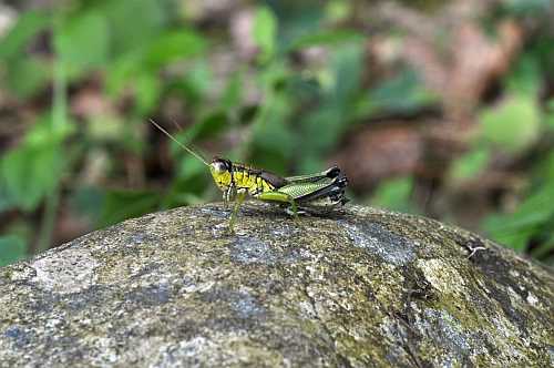 博物館の南側の山裾に、大きな玉石積みの腰高くらいの高さの擁壁があるのですが、その一番上の石に乗って、おすまししていたフキバッタの若者(最終令くらいの幼虫)が見られました。 もうちょっと近づいて、と。いい感じですね。 確証はないですが、メスアカフキバッタの幼虫かもしれません。そこで思い出される過去記事(2020.8.10)があります。たいせつなので、ぜひ、ご一読ください。 https://plaza.rakuten.co.jp/bnvn06/diary/202008100001/