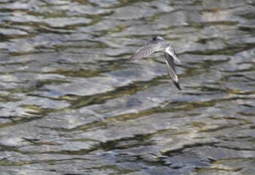 午後の一時、下部川の流れを眺める時間がありました。今日も暑かったです。そんな中、流れの周囲でエサを探すツバメの姿がたくさん見られました。 ツバメたちは、エサ探しだけではなく、補水もしているようで、水面に波紋ができるほどに飛びながら近づき、瞬間的に水を飲んでいるように見えました。写真は水に触れた後、急に体を起こして上昇気味に飛んでいったツバメを偶然たまたまに撮ることができたものです。
