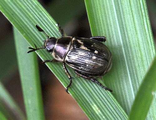 下部リバーサイドパークの草原で、小さなコガネムシの1種を見ました。マメコガネです。顔の前に見えるクローバーの葉と大きさを比較してみると、どの程度の大きさなのかおわかりになるかと・・・。 回り込んで、正面からのお姿拝見です。顔にピントが合わずじまいでしたが、小さくてもりりしいお顔、英語ではジャパニーズビートルとか。 これも7月16日の観察記録でした。