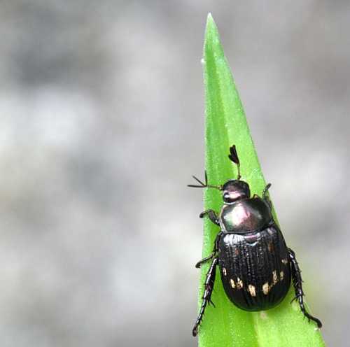 少し背中のマダラが地味ですが、セマダラコガネくんです。ちいさめのコガネムシの仲間です。