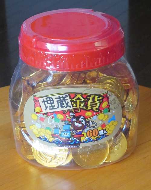 いま、博物館のミュージアムショップの目立つところに、「海賊金貨」チョコレートが積まれて、お客さまの注目を集めています。 昨日、1つ買い求めました。そして、ラベルの上に いたずら貼り紙したのです。その心は、今日ある埋蔵文化財関係の皆さんのお集まりに、これをばらまいたら、PRを兼ねた一興になるかしら、とのちっぽけ、かつ大盤振る舞い的心づもりです。反応が楽しみ・・・。 だれですか、「埋蔵」のし(衆)は、「海賊」と変わらんようなしだからな、なんていっているのは・・・。