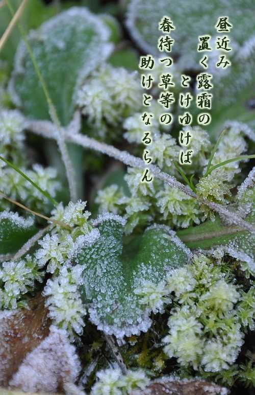 博物館の隣の下部リバーサイドパークも、おおかた山の陰、昼近くになってもまだ霜が見られますが、さりとて徐々にはかなく消えゆきます。融けて流れて、草たちの明日への力になるのかしらん。そんな想いがしました。