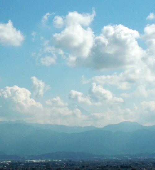 しばらくしてあきらめようとしたとき、よく見ると、雲間にうっすら富士のお山が顔を出して