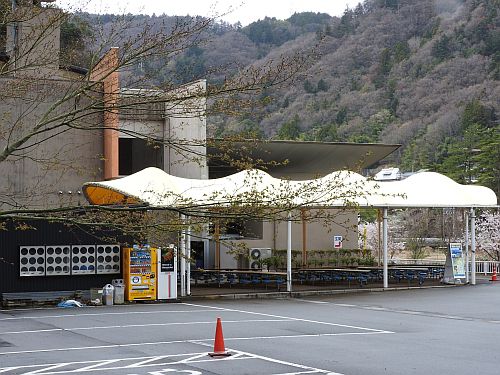 シノ桜の咲き誇りと博物館の建物との取り合わせです。