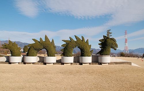 甲斐市のドラゴンパークにある、ドラゴンのトピアリーです。
