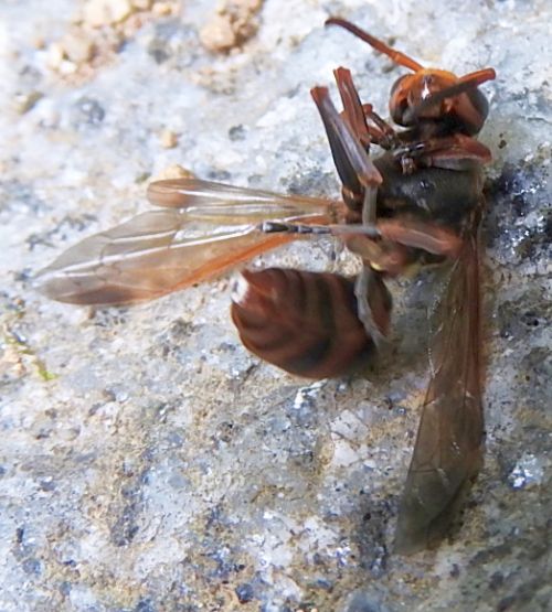 こちらの写真は、そのうちの1つの個体です。この写真と蜂の巣の特徴から、キボシアシ