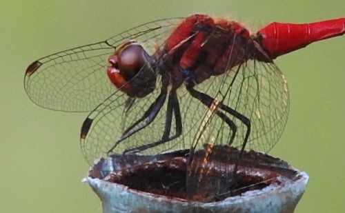 赤く色づいたオスの個体のようです。まさに赤トンボですね。