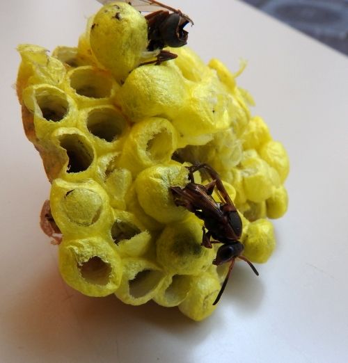 以前に退治したしたはずの巣の中から、幼虫が羽化しようとしたようです。こうしたこ