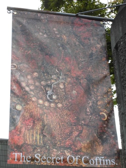 る円柱が並びますが、そのそれぞれに垂れ幕が掛かっていて、主要な展示物を紹介していま
