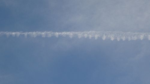 その飛行機が通過してしばらくすると、残された飛行機雲は、こんなふうに変化して、