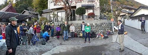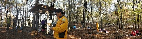 写真は、休憩の前に勤労感謝の日の10分間ご奉仕のようすです。醍醐山を愛する会で