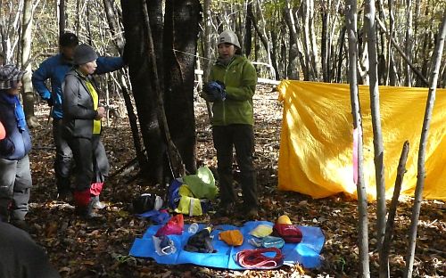 お腹がいっぱいになって、その後は、山岳ガイドの達人、堀内さんによる簡易テント