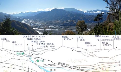展望地Cに向かい、富士川の流れを中心に、西方から南そして東側まで見渡しました。