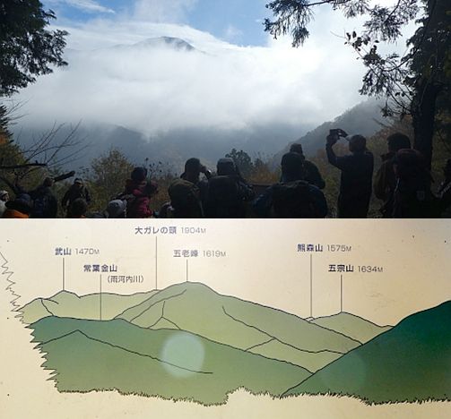 はじめ雲に隠れていた五老峰が、にわかに頭を見せてくれ、一同から歓声があがりました。