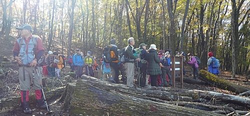 山頂部での活動を終え、下山行程に移り、晩秋の趣を残す山道を楽しみながらの下山。
