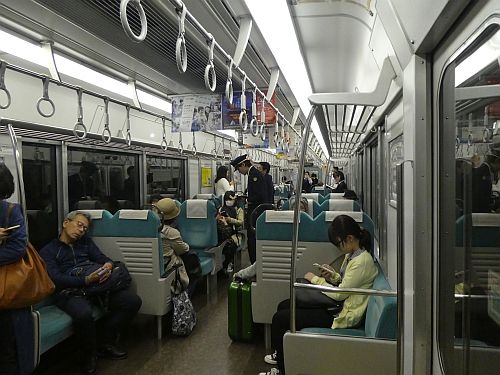 車内のようすですが、若い車掌さんが車内をまわって、切符の販売などのサービス
