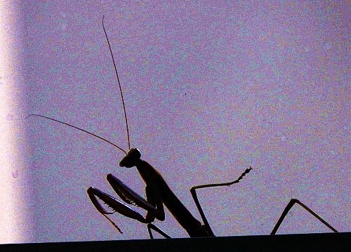 少し時間をおいてみると、こんな形に変化・・・。カマキリさんでした。