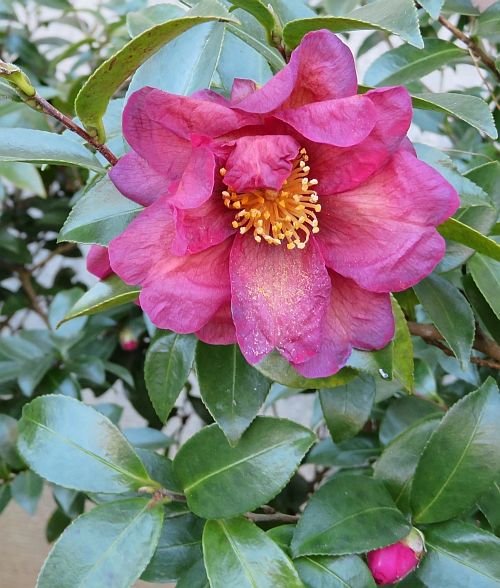 こちらは、年を越して、この1月2日に撮影したところの、同じサザンカの花であり