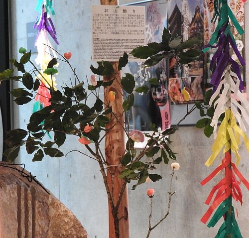 こちらがご本家の、お山飾りの根元に取り付けられた団子花です。この画像のほぼ
