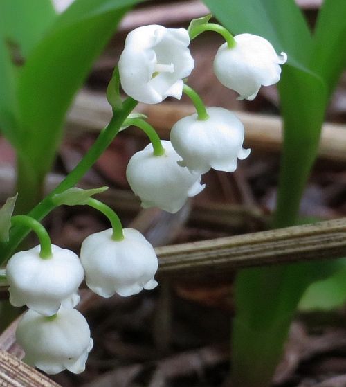 基本的に下向きに咲いていますが、1つだけ、横向きで花の内側がのぞけるものが