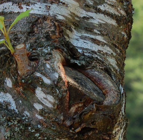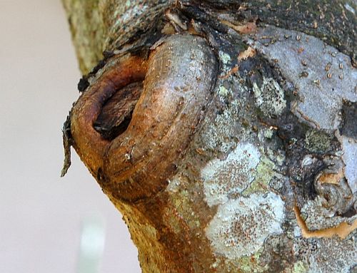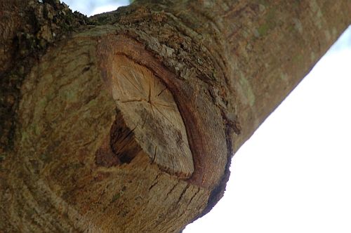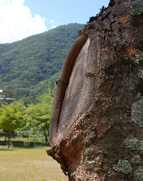 その1つを間近で観察してみると・・・、切り口を覆い隠すかのように、周りの樹
