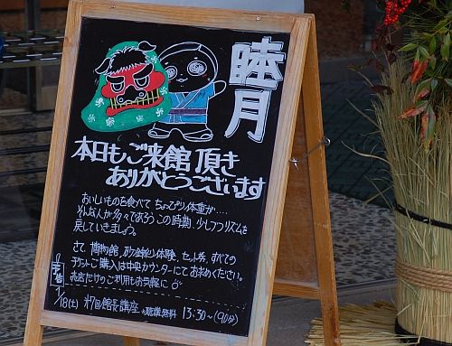 そんな門松の隣に出ていた今日のウェルカムボード。大きな文字で「睦月」とあり