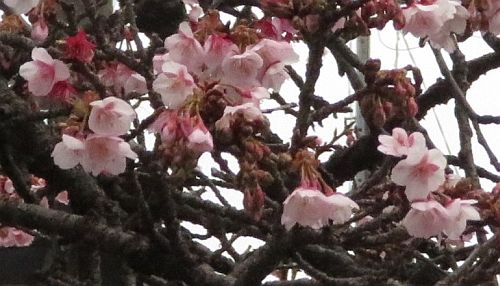 カンザクラの1種とされているものですが、いつもは2月の初めに咲き出すのに、